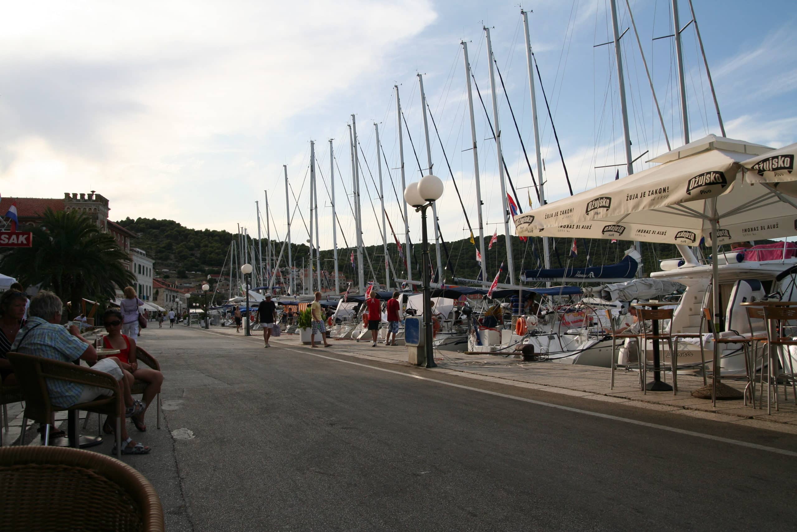 Der Hafen bietet an der Nord und Südseite – außer bei Bora – sichere Liegeplätze an. Bei Bora wäre Vrboska die bessere Wahl.