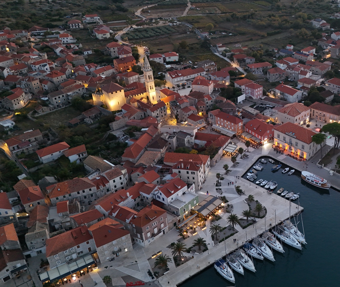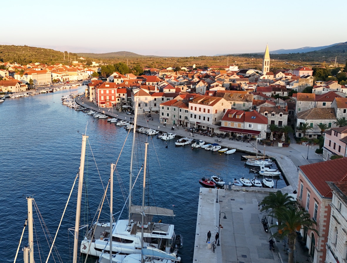 Die Atmosphäre im Ort ist entspannt und authentisch – mit kleinen Konobas, Cafés und Steinhäusern, die sich harmonisch in die Landschaft einfügen. Wanderwege führen durch duftende Pinienwälder und Olivenhaine, und die Sonnenuntergänge über dem Archipel sind spektakulär. Wer Maslinica besucht, erlebt ein Stück unverfälschtes Dalmatien – stilvoll, entspannt und voller mediterraner Magie.
